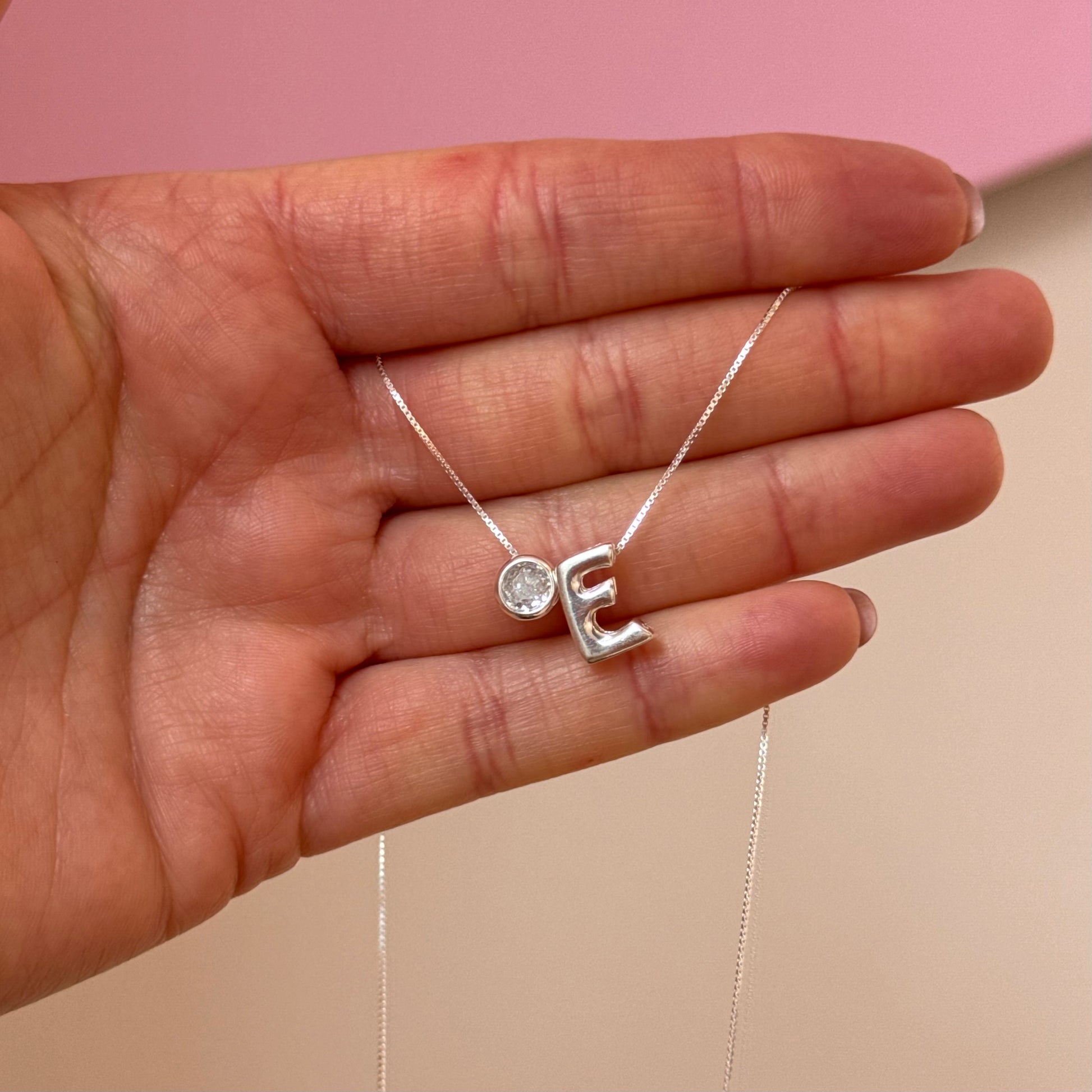 Plata 925. Cadena veneciana con punto de luz e inicial. 40 cm con regulador de 3 cm.