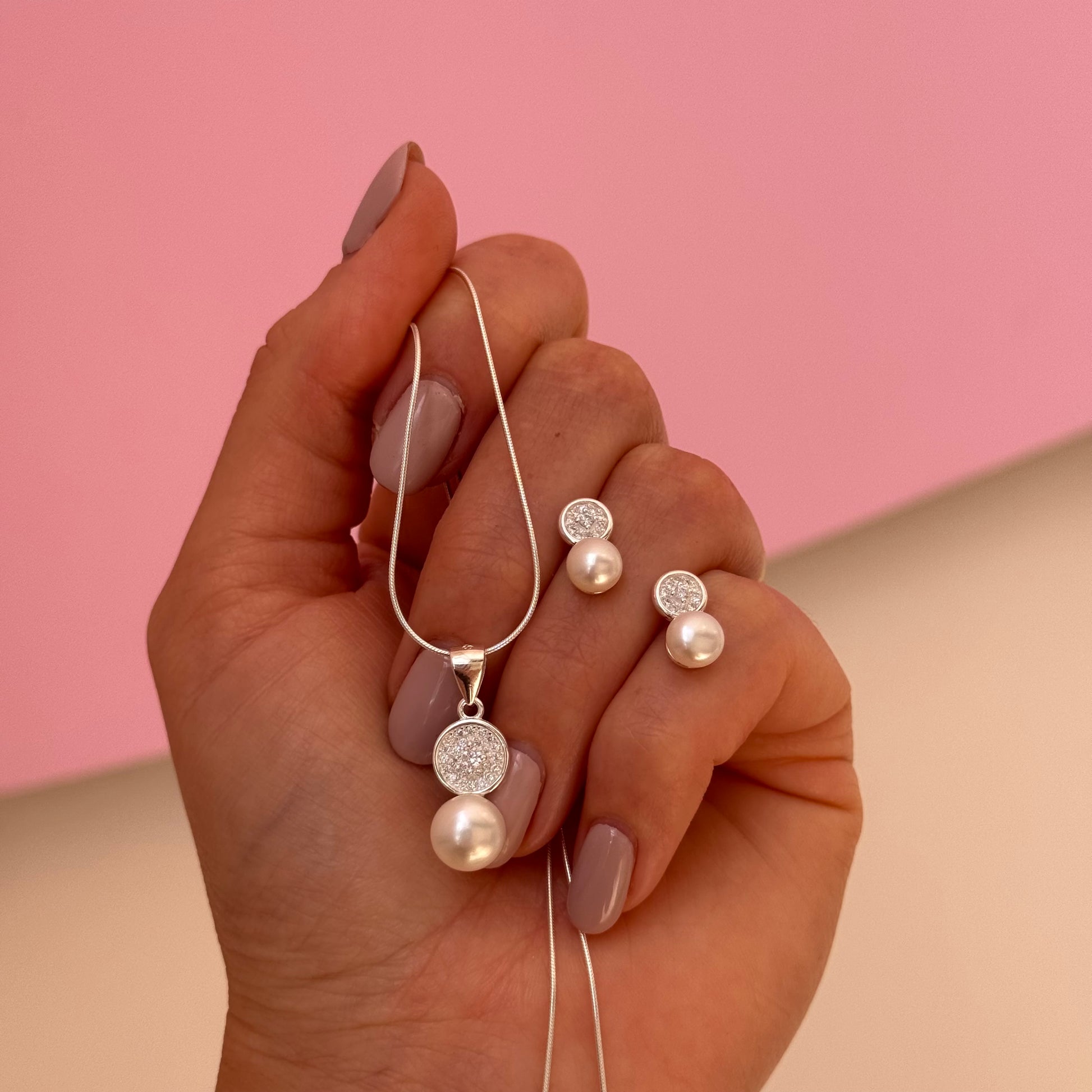 Plata 925 y circonias. Incluye cadena y caravanas con cierre mariposa.